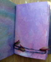 I can also show 2 books I've made as gifts using grungepaper for the cover. I used brusho to colour the pages of both books. They've been left mostly blank inside with a bit of stitching and a few pockets with quotes in. The heart on Pat's book is made from Tyvek and the flowers on Tracey's is made from fabric paper.